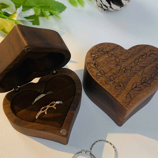 Wood Ring Box - Heart Shape Ring display Box